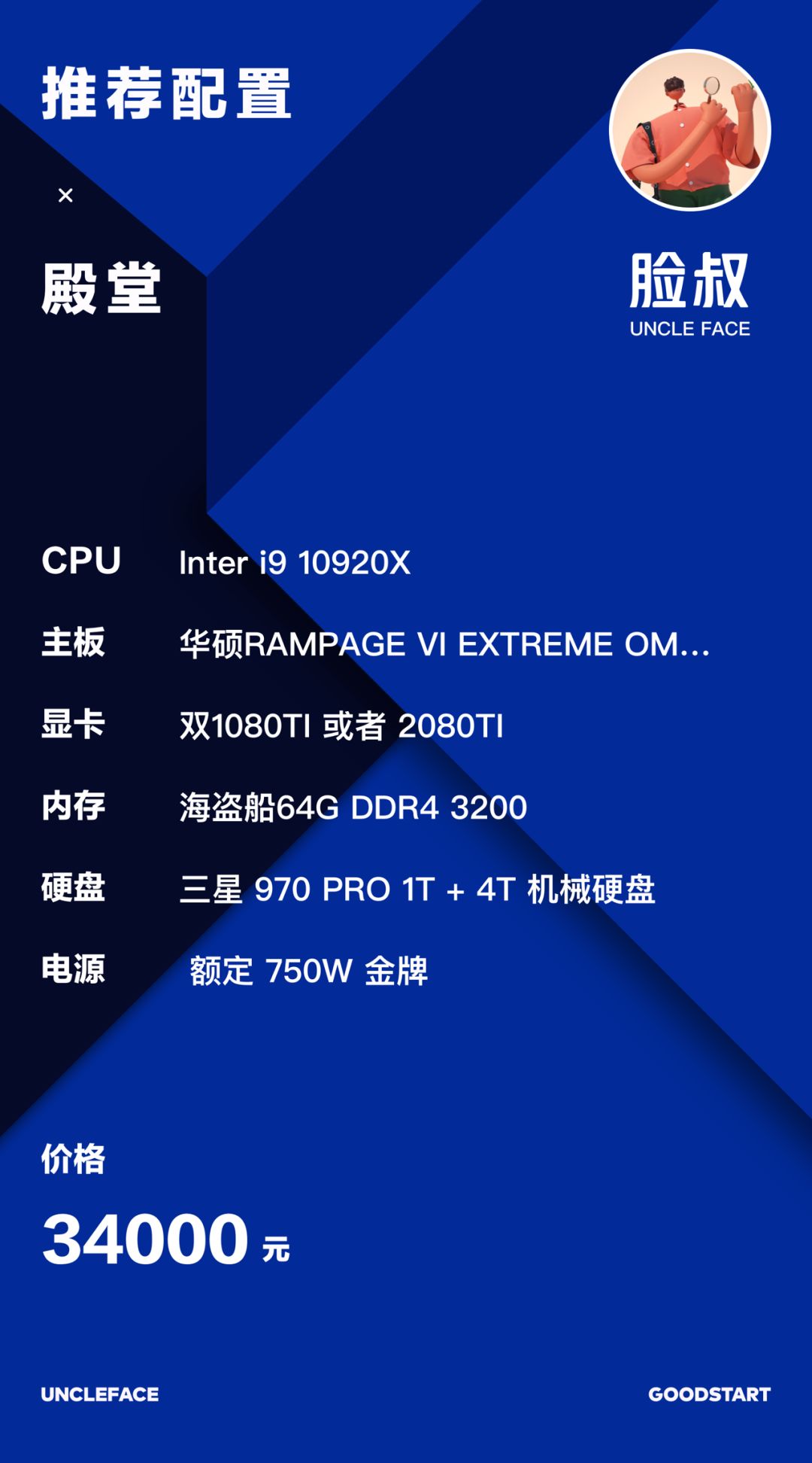 嗨,各位小伙伴们好,昨天我朋友圈问了一下,很多同学对电脑配置比较关心,我也简单的聊一下这个配置问题哈。因为我本身对这一块也不是特别懂,所以有什么不对的地方欢迎大家在留言指出。另外很多同学说让我也分享我自己的设备,那我前面就说一下 一、我的设备 第*台电脑配置单 第二台电脑配置单 二、电脑四大件 显示器 显卡 CPU 内存 三、推荐配置单 初级 中级 不错 殿堂 我的设备 我使用的电脑配置如下,这台电脑是我在2018年3月大三的时候配置的,那个时候也是我刚接触C4D这个神奇的软件,我在换电脑前,也很纠结,因为我当时主要是学数字媒体艺术,没用过C4D,手上的电脑是一台macbook pro 15寸,为了换电脑,我忍痛把我的笔记本卖了,去凑了一台组装PC机,并且这台电脑一直只用至今,还是很好用,下图是我MBP的遗照。 第*台电脑配置单(2018-2020) CPU AMD锐龙 1600x +下面主板 主板 华硕 B350F GAMING 2303元 显卡 索泰 GTX1060 至* Plus 2799元 内存 金士 顿骇客神条 8G DDR4 2400 659元 硬盘 三星 960EVO 250G + 希捷 2TB 679元 + 348元 电源 安钛克 VP500P 239元 机箱 乔斯伯 UMX4 799元 第二台电脑配置单(2020,2月) CPU 英特尔 I7 9700KF +下面主板 主板 玩家国度 Z390-I 4449元 显卡 华硕RTX 2080 TI 11999元 内存 美商海盗船 DDR4 3200 (16GBx2) 1349元 硬盘 三星970 PRO 512G + 希捷2TB 1369元 + 381元 电源 美商海盗船 750W 899元 散热器 美商海盗船 H100I 899元 机箱 安钛克雷蛇联名 1599元 这台电脑是我上个月,也就是今年的2月底组装的一台,也是我这几年唯*的大出血,更换这台设备是因为之前做虾米的图,我每一张定稿,在渲染的时候总需要很久才可以达到想要的画质,而且,当时的工程比较大,每次打开日本的工程都直接卡崩死机了,这点在项目比较紧急的时候,会比较焦躁。也让我下定了升级设备的决心。 下面正文开始了,对我们三维创作者或者是所有的设计师来说,比较重要的有四大件。 显示器 显示器,非常重要,在整台电脑中,也算一个非常重要的配件了,显示器的色彩好坏关系到了你作品的色彩输出,显示器颜色不准的话,你调色可能会发生奇怪的偏色现象,另外我也建议如果条件允许,弄两块显示器真的很舒服 显示器推荐 (其实显示器价钱差不多的其实色彩也都差不多,这里我只推荐几个我接触或者用过还不错的,个人喜欢戴尔的显示器,更加精致和好用一些,尤其是窄边框) A. 基本 戴尔 U2417H 23.8寸 1080P - 1299元 LG 24MP88HV 23.8寸 1080P - 1199元 B. 中级 戴尔 U2719DS 27英寸 2K - 2699元(我在用) LG 34WL500 34寸 2k - 1899元 AOC 27英寸 2K - 1799元 C. 不错 戴尔 U2718Q 27英寸4K - 3699元(我在用) LG 27UL850 27英寸 4K - 3699元 (Type C) 显卡 显卡有两家牌子,一家是NVIDIA,一家是AMD,如果你是三维设计师,那么我推荐你zui*好买NVIDIA的显卡,也就是我们常说的N卡,它支持GPU渲染,就比如说octane渲染器,在AMD上(苹果的老相好),都是不支持GPU渲染的,所以Mac现在全系列都不支持这些主流的GPU渲染器。Octane说会发布Octane x好像黄了...目前常见的显卡大致为10系列和20系列,以及16系列。10系列是能够支持Octane 3.07欢乐版的,20系列和16系列的显卡,必须付费使用4.0版本。我个人建议电子产品,买新不买旧,另外经济允许的条件下,建议入正版Octane,4.0的版本在渲染速度与AI降噪等技术上都有很大的提升。 显卡推荐 A. 基本 1050ti - 650元 1060 - 1000元 B. 中级 1660 - 1600元 1660ti - 2000元 1070 - 2400元 2060 - 2400元 2070 - 3200元 C. 不错 1080ti - 5500元 2080 - 6200元 2080ti - 10000元 CPU CPU就是处理器,负责你的各种操作和程序运算,主流的CPU品牌分为两种:一个是Inter,一个是AMD,这两家的我都觉得可以任意挑选,没啥大区别,AMD的相对来说更加优惠实在一些。 CPU推荐 A. 基本 Inter i5 - 9400F - 1199元 Inter i5 - 9600KF - 1399元 AMD R5 3600 - 1369元 AMD R5 3600X - 1549元 B. 中级 Inter i7 9700 - 2599元 Inter i7 9700K - 3099元 AMD R7 3700x - 2359元 AMD R7 3800x - 2549元 C. 不错 Inter i9 9900KF - 3499元 Inter i9 9900K - 3999元 AMD R9 3900X - 3699元 AMD R9 3950X - 5749元 内存 内存越大越好,你开的软件都在占用内容,一般推荐16GB左右适中,咱们这一行,zui*低不要少于8GB,不然打开ps就很容易出现内存不足的情况。牌子的话买金士顿这类的大*子基本都没问题。 我该选择什么样子的电脑?(笔记本or台式机) 需求不明确的时候,很多人zui*困惑的是我到底要笔记本还是台式机,这个问题其实很容易解决。笔记本和台式机的初衷不一样,笔记本是针对移动办公而生的,那么问题来了,就是你是否需要大量的移动办公需求,如果没有,那么就可以选择台式机。有些同学当然也会因为颜值而去选择笔记本,更加的便携小巧和省事,这点也当然毋庸置疑啦,主要还是考虑便携性上去做选择,就比如我,因为工作原因,只能卡在macbook上,因为需要用到sketch这些只有在macos平台上的软件,但是,你要给自己多一条路,可以在mac上去学习c4d,等自己真的觉得自己需要,再去购买pc都是没有问题的,身兼多职多才多艺才是生存的根本。 我整理了一个配置单 当然,额外的配件如显示器、散热器等等这些我没有算进来,大家自行参考,个人风格较重。 差不多就这些了,以上价格会有浮动,我说的也都是大概的范围,另外我觉得啊,电脑性能够用就行,提升自己的能力才是zui*重要的。我之前的电脑按照市场价算下来,大概7k左右,也用到现在,并且依然可以用来干活。偶尔会听到一些同学说自己的设备太差了之类的话,当然