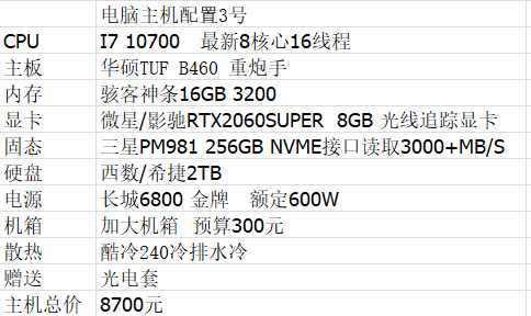 因为经常有人问我电脑配置的问题,所以我就专门写个推文,虽然我有8台电脑,但是其实我除了显卡之外不大懂电脑的,基本上都是交给专门配电脑的朋友解决的,价格也是比网上的配件便宜,另外买电脑不要去网上买整机,宁愿自己网上买配件组装,实在不行可以找会电脑的朋友帮忙组装,什么?你说你没朋友?那你平时那些要模型的朋友呢? 在说配置之前我必须说几个重点,首先是这些电脑配置都是为了使用OC渲染器的,另外20系列的显卡和部分10系列显卡(比如2070,2080之类和1660,1650之类)只能用OC4.0版本的,也就是说如果你打算买20系列和1660,1650显卡,那么你就得去OC官网购买或者租正版OC了,因为目前4.0的OC是没po*解(和谐)的,我推荐是直接租,一个月是20美金,我是很久前就租了的,那时候还支持PALPAY的。 那么如果你不打算花钱在正版OC上,想用欢乐版的OC3.07版本的话,那么你就考虑10系列显卡就行了(1050TI,1060,1070,1080之类的),额外说明下,目前很多10系列的显卡已经停产,所以像我就直接买二手显卡的,我目前用了俩年没什么问题 所以下面就贴各种价位的组装机,各位按自己预算去配电脑就行了,当然今后配件肯定会升降的,也可能会有新的零件出现,所以大家注意看推文发布的时间跟你看推文的时间差了多久 一、用和谐版/正版octane渲染器电脑配置 下面先推荐10系列显卡的组装配置,也就是能使用OC欢乐版的当然10系列的也可以使用zui*新正版OC 4680元 5800元 8300元 11900元 15900元 21000元 好了,那么接下来是20系列的显卡,也就是你只能使用正版OC,没法使用欢乐版的,但是有个优点就是你可以体验超级快的渲染体验。 6300元 8700元 11900元 14700元 23800元 好了,终于写完了,当然这些配置不是固定的,根据你自身的需求去修改就行了,比如你只要显卡特别好,然后其他配件弄到zui*低价的也是OK的,具体可以询问自己身边会电脑的朋友或者C4D同行。 原文标题:关于做C4D的各种价位的电脑配置 原文作者:NiaoNiao的C4D课堂 |