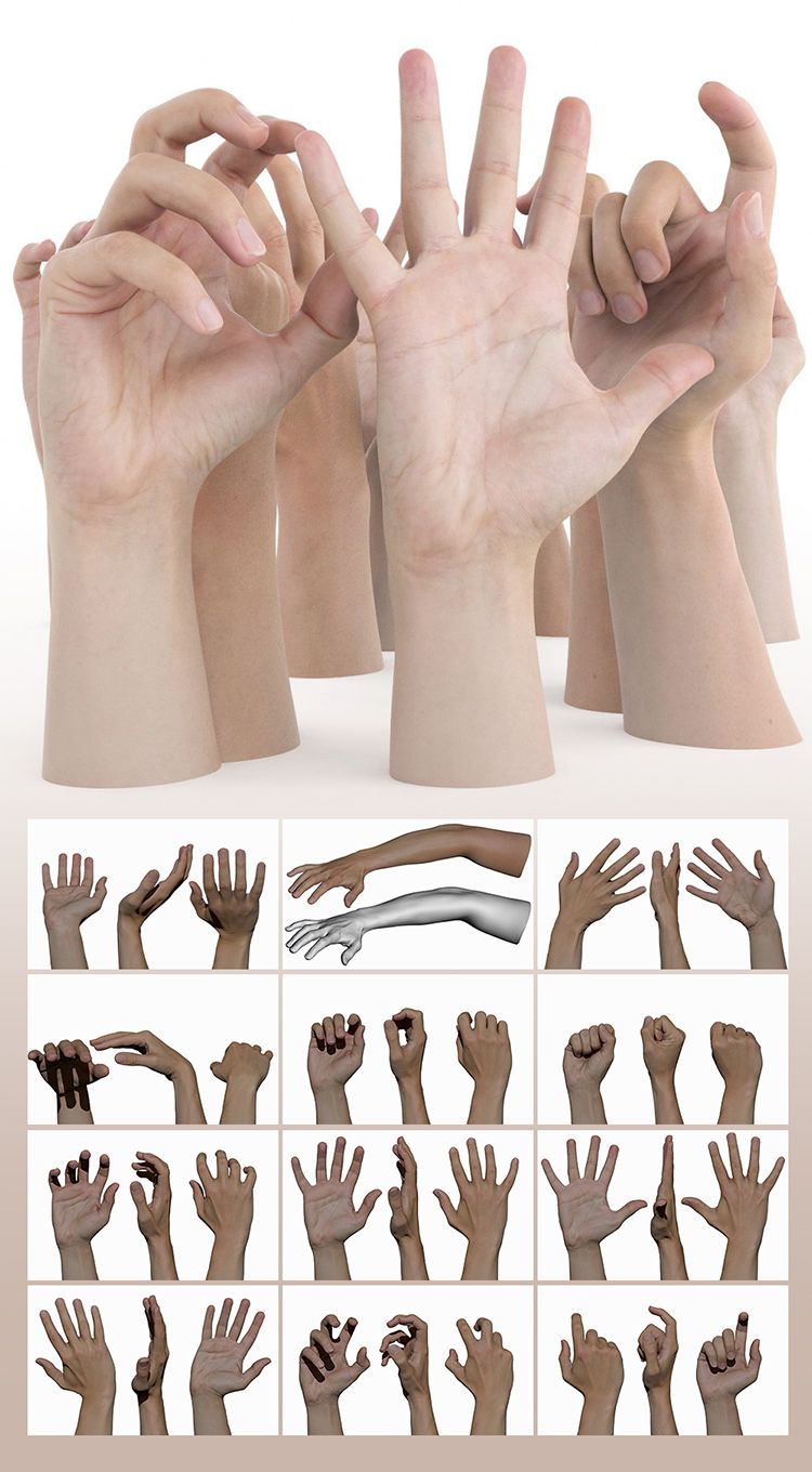 11个男性手势手姿势3D扫描模型 3D Scan Store – Ultimate Male Hands Pack Pt. 2